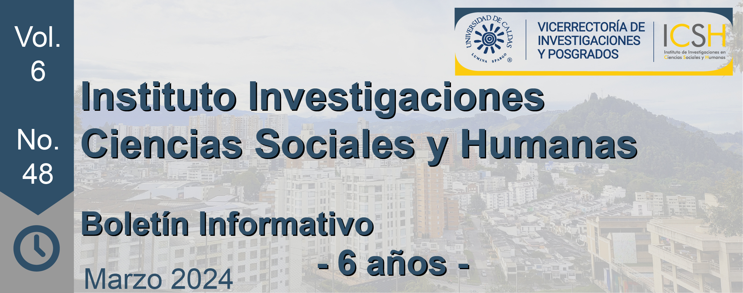 Conoce las actividades académicas, eventos, convocatorias y novedades del Instituto de Investigaciones en Ciencias Sociales y Humanas de la Universidad de Caldas. Consulta el boletín completo con enlaces interactivos directamente en esta página. Boletín Informativo ICSH #48