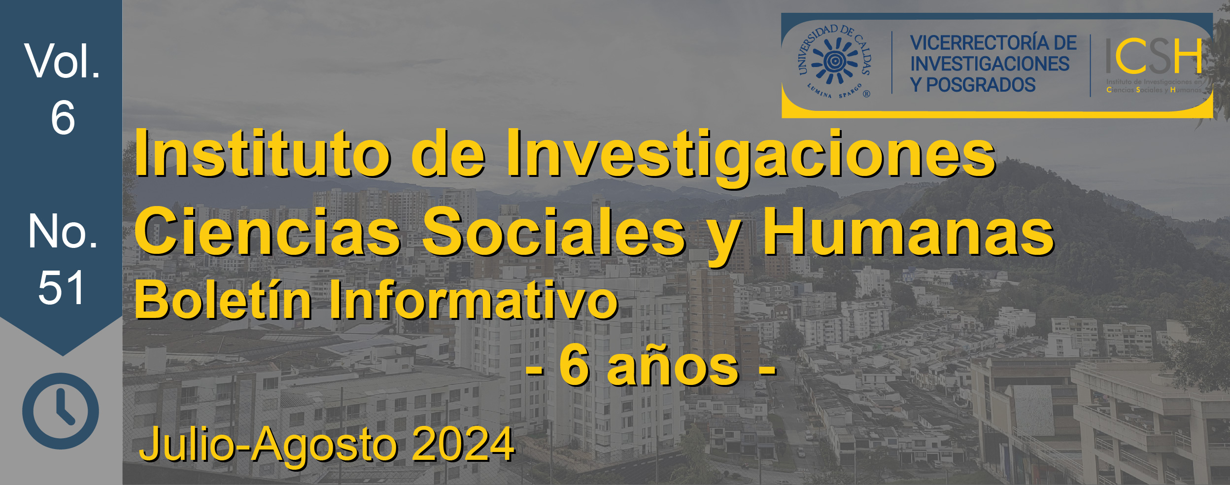 Conoce las actividades académicas, eventos, convocatorias y novedades del Instituto de Investigaciones en Ciencias Sociales y Humanas de la Universidad de Caldas. Consulta el boletín completo con enlaces interactivos directamente en esta página. Boletín Informativo ICSH #51