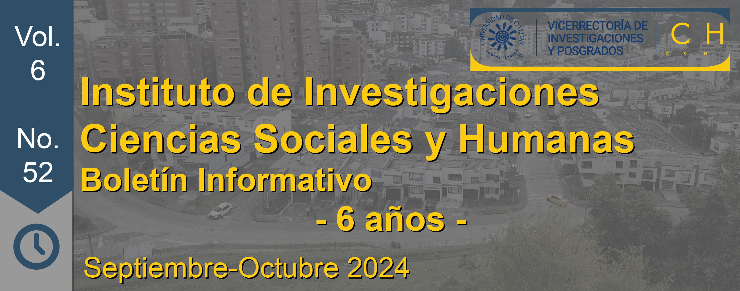 Conoce las actividades académicas, eventos, convocatorias y novedades del Instituto de Investigaciones en Ciencias Sociales y Humanas de la Universidad de Caldas. Consulta el boletín completo con enlaces interactivos directamente en esta página. Boletín Informativo ICSH #52