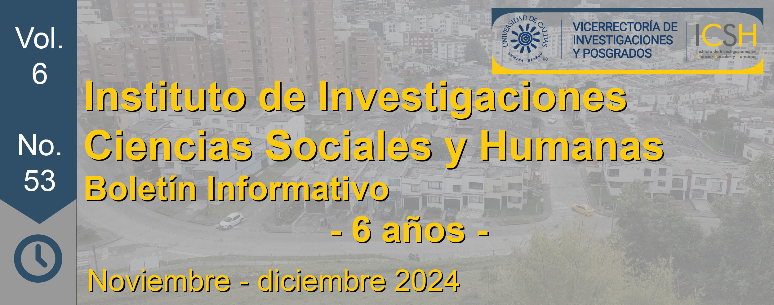 Conoce las actividades académicas, eventos, convocatorias y novedades del Instituto de Investigaciones en Ciencias Sociales y Humanas de la Universidad de Caldas. Consulta el boletín completo con enlaces interactivos directamente en esta página. Boletín Informativo ICSH #53